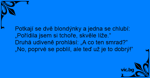 Potkají se dvě blondýnky a jedna se chlubí: „Pořídila jsem si tchoře, skvěle líže.”