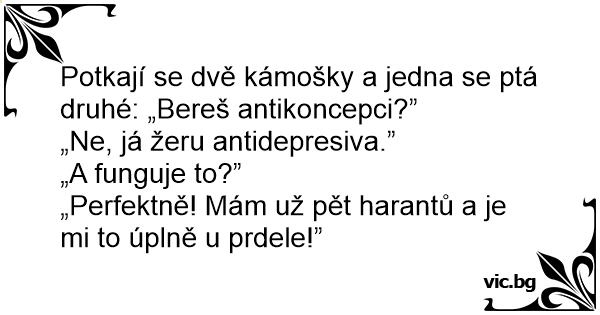 Potkají se dvě kámošky a jedna se ptá druhé: „Bereš antikoncepci?”