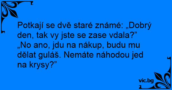 „No ano, jdu na nákup, budu mu dělat guláš. Nemáte náhodou jed na krysy?”