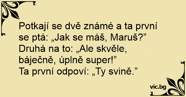 Potkají se dvě známé a ta první se ptá: „Jak se máš, Maruš?”