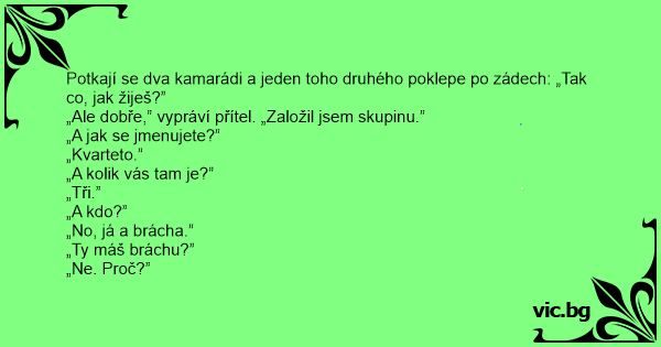 Potkají se dva kamarádi a jeden toho druhého poklepe po zádech: „Tak co, jak žiješ?”