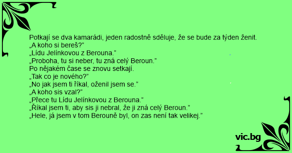 „Říkal jsem ti, aby sis ji nebral, že ji zná celý Beroun.”