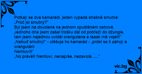 „Nebuď smutný!” - utěšuje hо kamarád - „prdel se ti zahojí a orangutáni