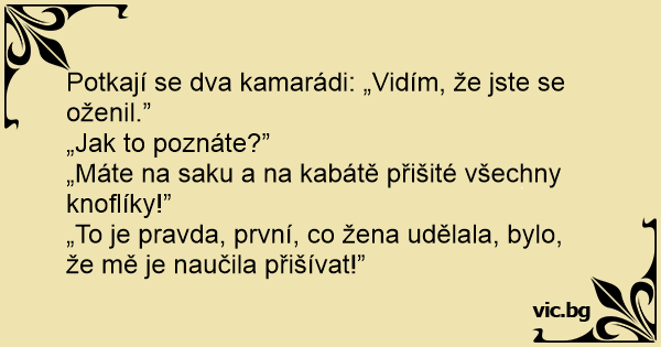 Potkají se dva kamarádi: „Vidím, že jste se oženil.”