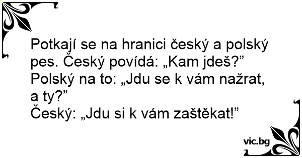 Potkají se na hranici český a polský pes. Český povídá: „Kam jdeš?”