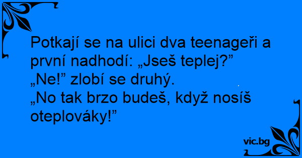 Potkají se na ulici dva teenageři a první nadhodí: „Jseš teplej?”