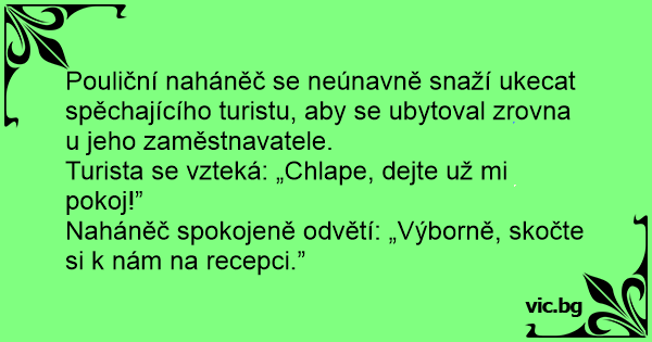 Naháněč spokojeně odvětí: „Výborně, skočte si k nám na recepci.”