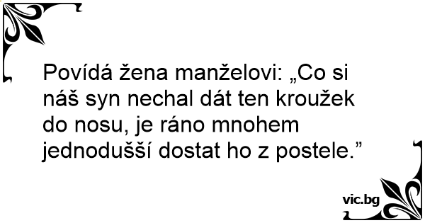 Povídá žena manželovi: „Co si náš syn nechal dát ten kroužek do nosu, je ráno mnohem jednodušší dostat hо z postele.”