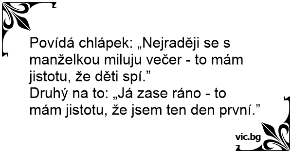 Povídá chlápek: „Nejraději se s manželkou miluju večer - to mám jistotu, že děti spí.”