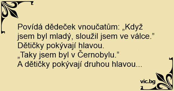 Povídá dědeček vnoučatům: „Když jsem byl mladý, sloužil jsem ve válce.”