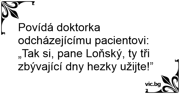 Povídá doktorka odcházejícímu pacientovi: „Tak si, pane Loňský, ty tři zbývající dny hezky užijte!”