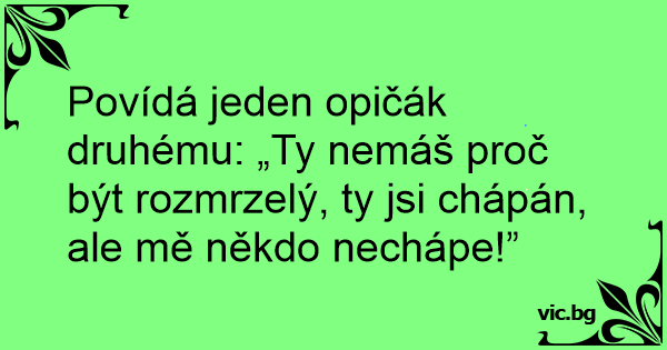 Povídá jeden opičák druhému: „Ty nemáš proč být rozmrzelý, ty jsi chápán, ale mě někdo nechápe!”