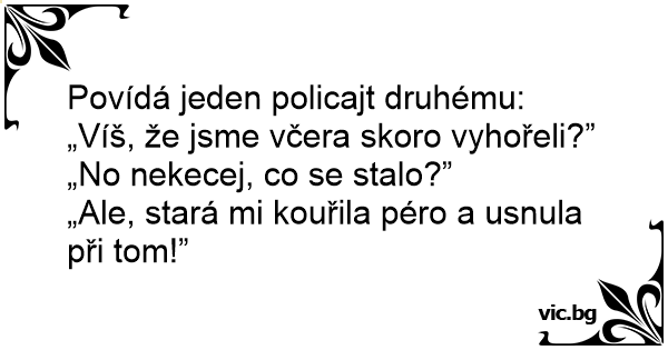 Povídá jeden policajt druhému: „Víš, že jsme včera skoro vyhořeli?”