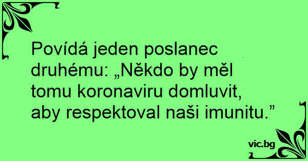 Povídá jeden poslanec druhému: „Někdo by měl tomu koronaviru domluvit, aby respektoval naši imunitu.”