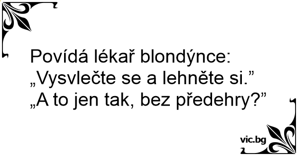 Povídá lékař blondýnce: „Vysvlečte se a lehněte si.”