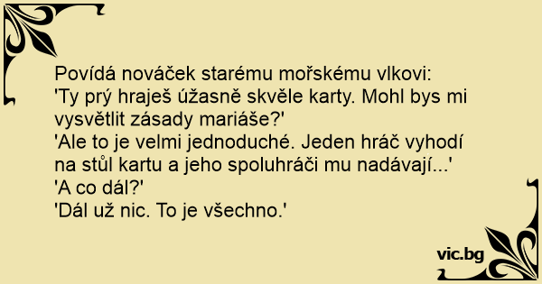 'Ty prý hraješ úžasně skvěle karty. Mohl bys mi vysvětlit zásady mariáše?'