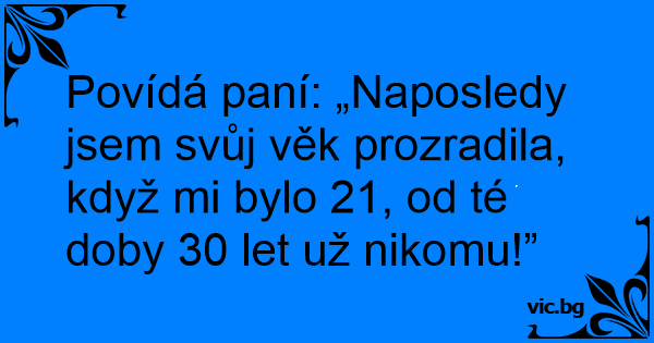 Povídá paní: „Naposledy jsem svůj věk prozradila, když mi bylo 21, od té doby 30 let už nikomu!”
