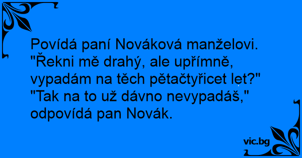 Povídá paní Nováková manželovi. "Řekni mě drahý, ale upřímně, vypadám na těch pětačtyřicet let?"