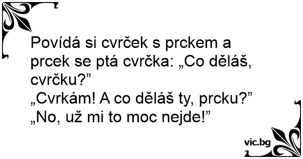 Povídá si cvrček s prckem a prcek se ptá cvrčka: „Co děláš, cvrčku?”
