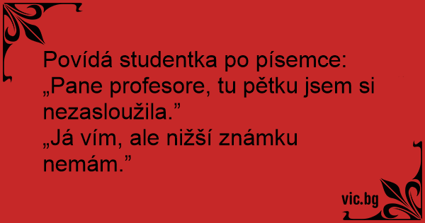 Povídá studentka po písemce: „Pane profesore, tu pětku jsem si nezasloužila.”