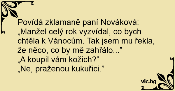 Povídá zklamaně paní Nováková: „Manžel celý rok vyzvídal, co bych chtěla k Vánocům. Tak jsem mu řekla, že něco, co by mě zahřálo...”