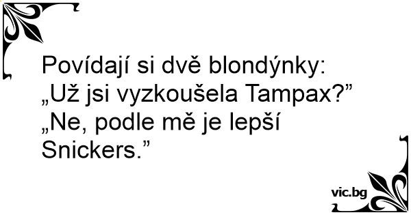 Povídají si dvě blondýnky: „Už jsi vyzkoušela Tampax?”