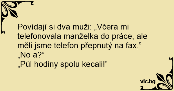 Povídají si dva muži: „Včera mi telefonovala manželka do práce, ale měli jsme telefon přepnutý na fax.”