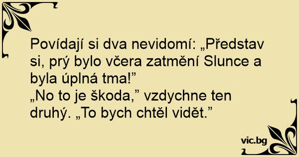 Povídají si dva nevidomí: „Představ si, prý bylo včera zatmění Slunce a byla úplná tma!”