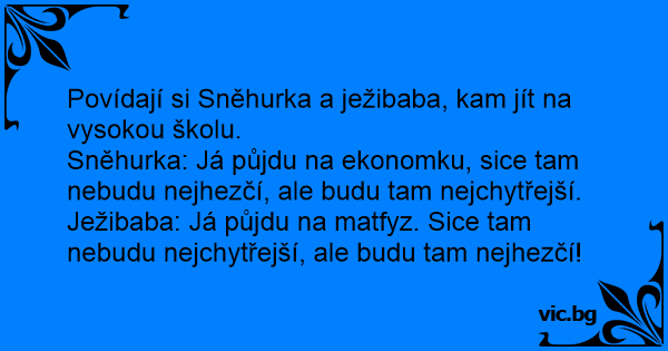 Ježibaba: Já půjdu na matfyz. Sice tam nebudu nejchytřejší, ale budu tam nejhezčí!