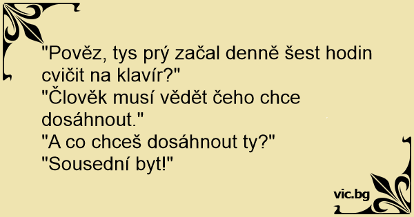 "Pověz, tys prý začal denně šest hodin cvičit na klavír?"