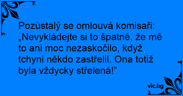 Pozůstalý se omlouvá komisaři: „Nevykládejte si to špatně, že mě to ani moc nezaskočilo, když tchyni někdo zastřelil. Ona totiž byla vždycky střelená!”