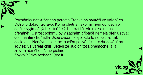 Poznámky nezkušeného porotce Franka na soutěži ve vaření chilli