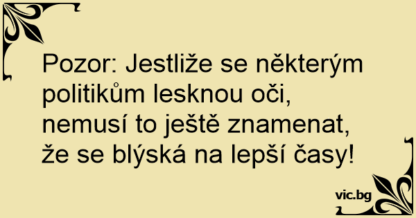 Pozor: Jestliže se některým politikům lesknou oči, nemusí to ještě znamenat, že se blýská na lepší časy!