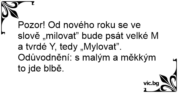 Pozor! Od nového roku se ve slově „milovat” bude psát velké M a tvrdé Y, tedy „Mylovat”.