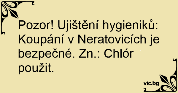 Pozor! Ujištění hygieniků: Koupání v Neratovicích je bezpečné. Zn.: Chlór použit.