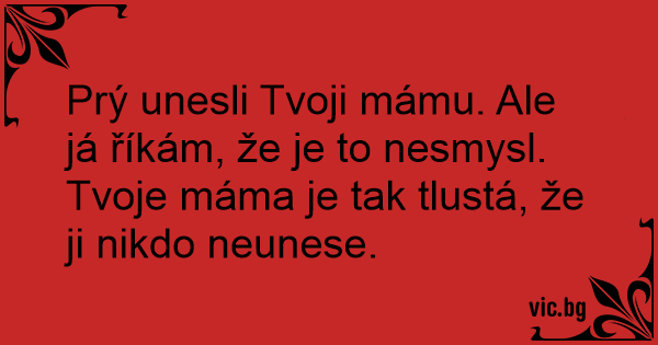 Prý unesli Tvoji mámu. Ale já říkám, že je to nesmysl. Tvoje máma je tak tlustá, že ji nikdo neunese.