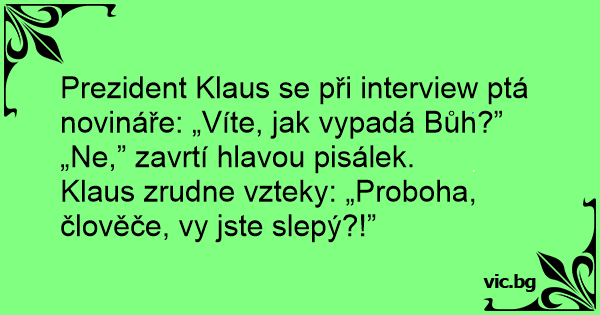 Prezident Klaus se při interview ptá novináře: „Víte, jak vypadá Bůh?”