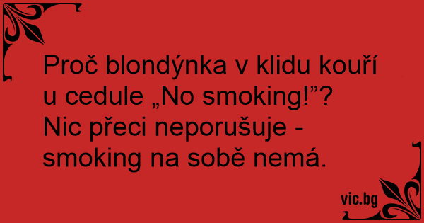 Proč blondýnka v klidu kouří u cedule „No smoking!”?