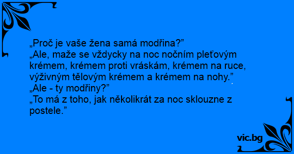 „Ale, maže se vždycky na noc nočním pleťovým krémem, krémem proti vráskám, krémem na ruce, výživným tělovým krémem a krémem na nohy.”