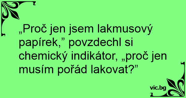 „Proč jen jsem lakmusový papírek,” povzdechl si chemický indikátor, „proč jen musím pořád lakovat?”