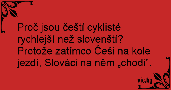 Protože zatímco Češi na kole jezdí, Slováci na něm „chodi”.
