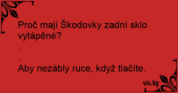 Miksi Skodassa on takalasin lämmitys? Jotta perheen emännän kädet eivät talvella paleltuisi, kun hän työntää sitä käyntiin.