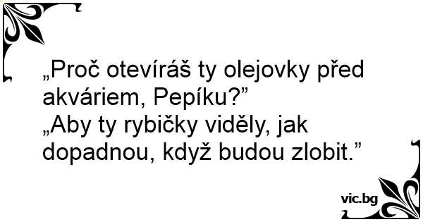 „Proč otevíráš ty olejovky před akváriem, Pepíku?”