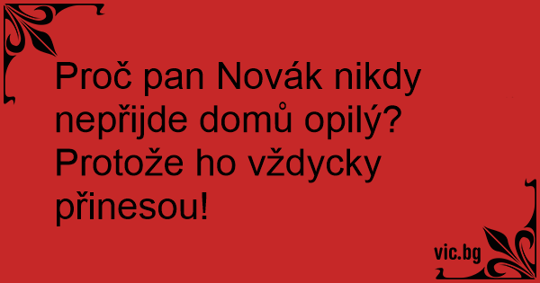 Proč pan Novák nikdy nepřijde domů opilý?