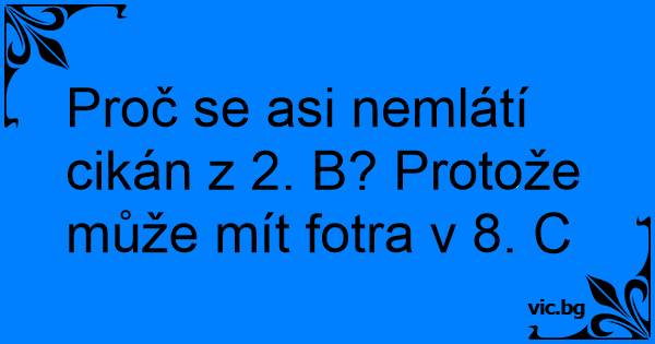 Proč se asi nemlátí cikán z 2. B? Protože může mít fotra v 8. C
