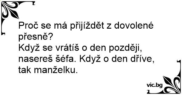 Když se vrátíš o den později, nasereš šéfa. Když o den dříve, tak manželku.