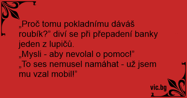 „Proč tomu pokladnímu dáváš roubík?” diví se při přepadení banky jeden z lupičů.