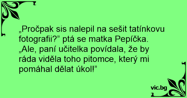 „Ale, paní učitelka povídala, že by ráda viděla toho pitomce, který mi pomáhal dělat úkol!”