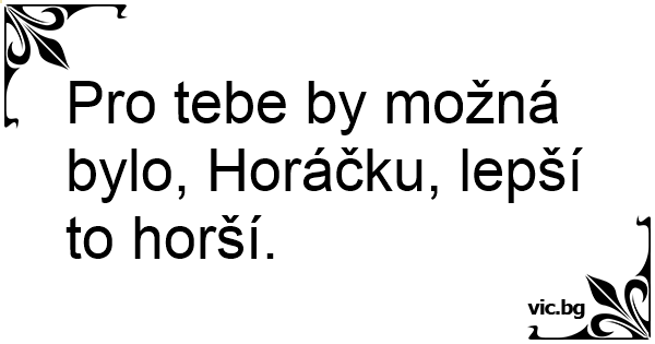 Pro tebe by možná bylo, Horáčku, lepší to horší.