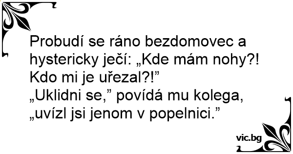 Probudí se ráno bezdomovec a hystericky ječí: „Kde mám nohy?! Kdo mi je uřezal?!”